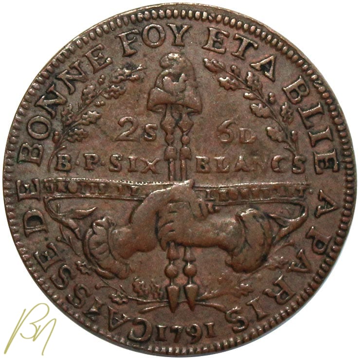 Constitution (1791-1792), Monnaie de Confiance 2 Sols 6 Deniers de la Caisse de Bonne Foy 1791, très belle exemplaire .